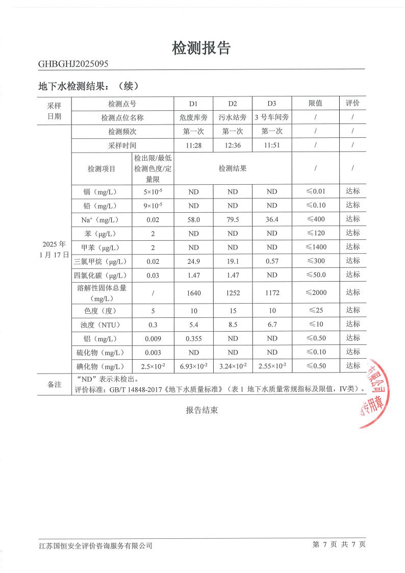 2025095南京凱燕環(huán)保科技有限公司地下水檢測